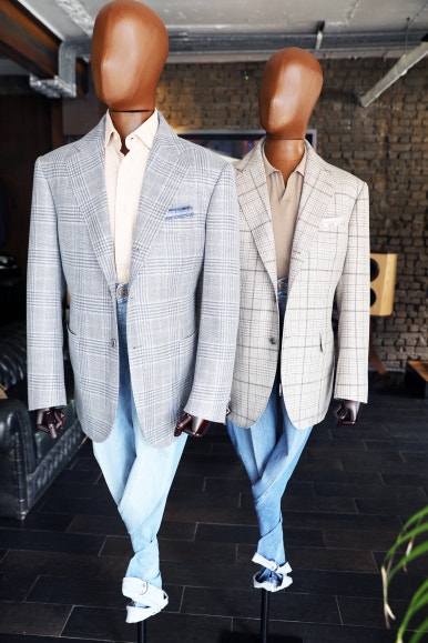 살롱에서 옷을 주문하는 것을 좋아하는 좋은 테이스트 를 가진 남자들이 각지 의