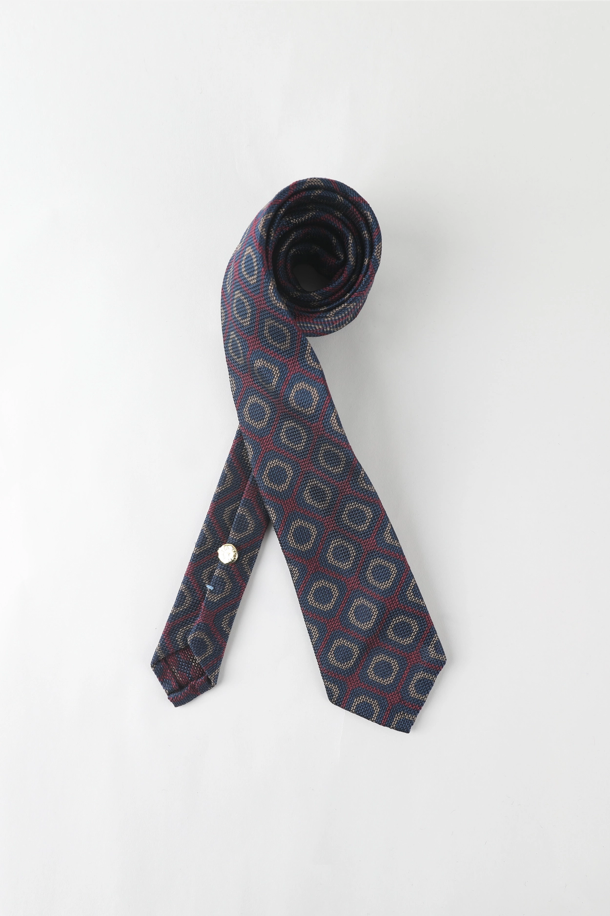 Stefano bigi_Jacquard Geometrick pattern Pure Silk Tie In Navy/Sangria