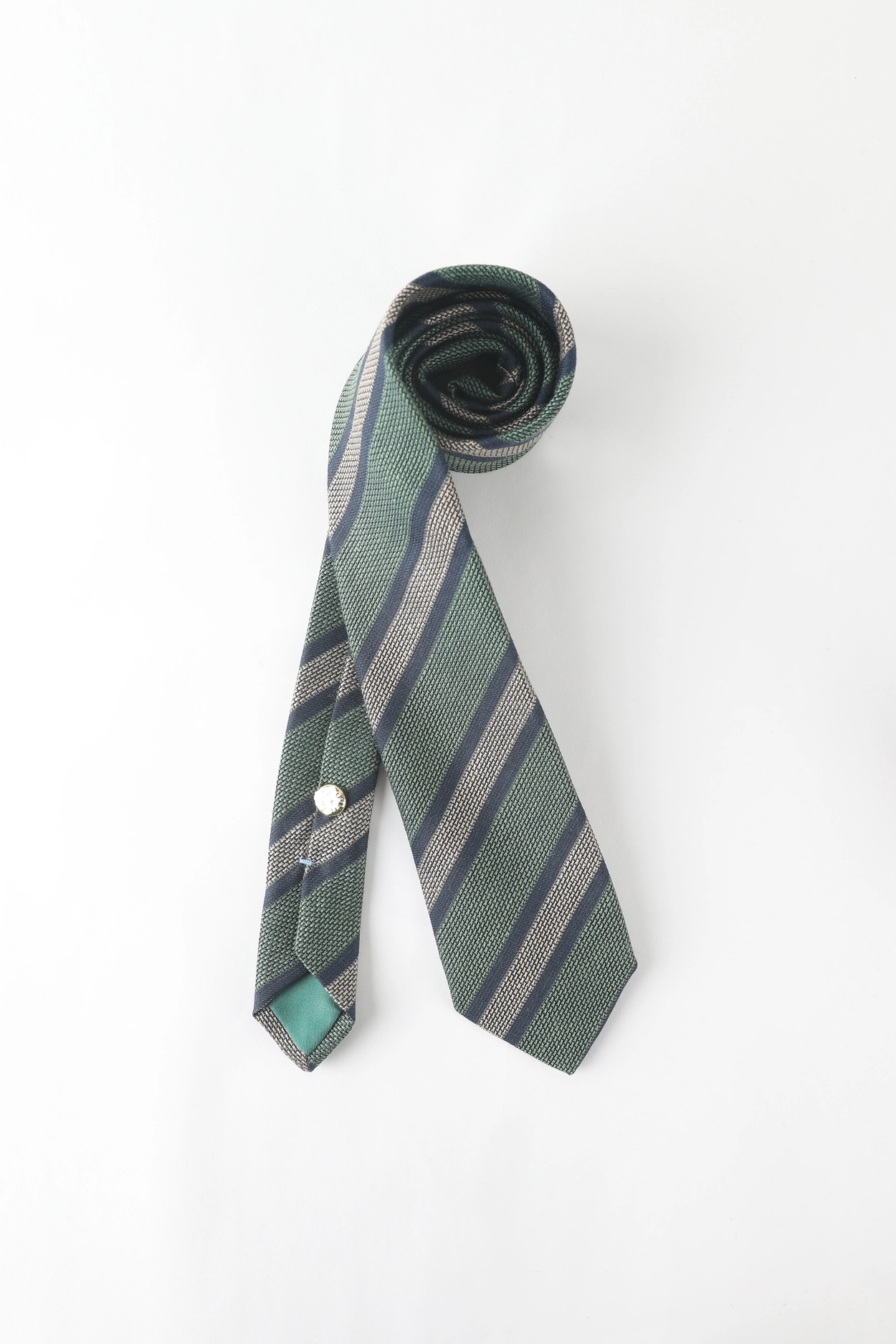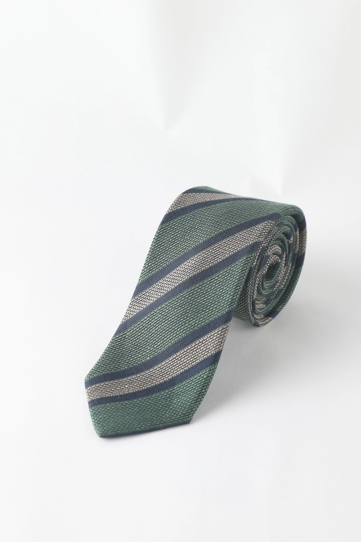 Stefano bigi_Jacquard Regimental Linen blended Silk Tie In Viridian