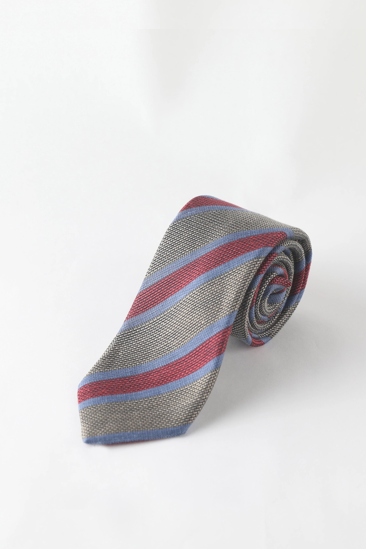 Stefano bigi_Jacquard Regimental Linen blended Silk Tie In Red